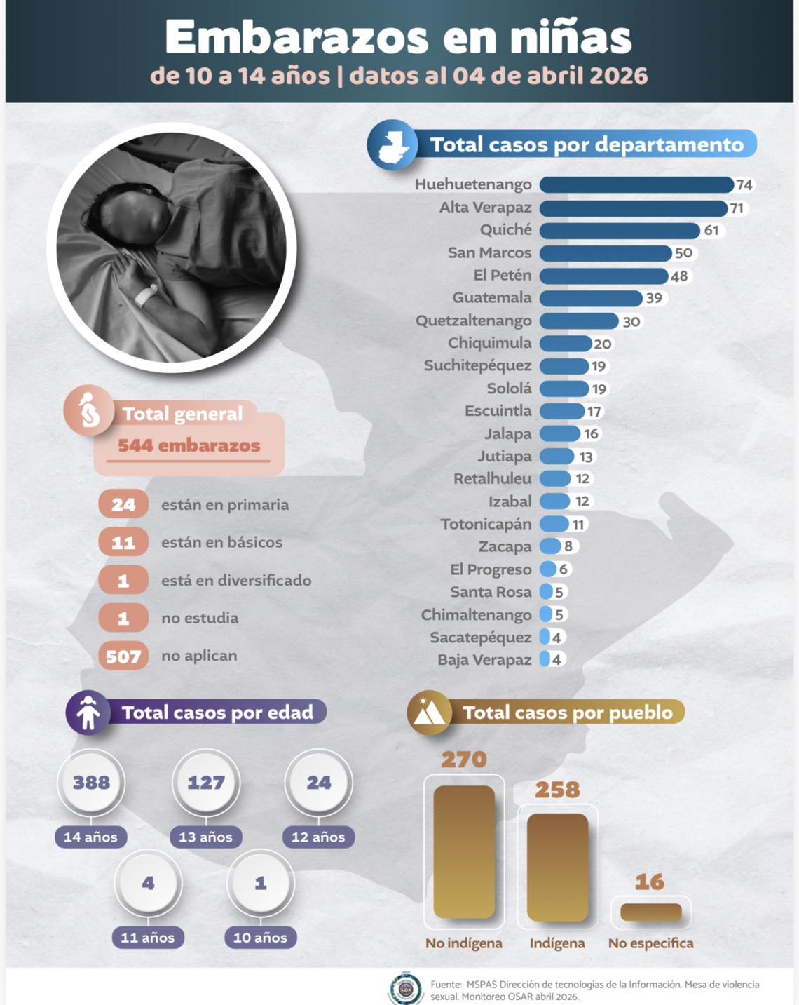 Hay números que no se leen, se incrustan, están tatuados en el rostro de este triste país. El 544 aparece con la limpieza de un informe bien diagramado y, sin embargo, arrastra una carga que no cabe en ninguna tabla: embarazos en niñas de 10 a 14 años durante el primer trimestre de 2026.